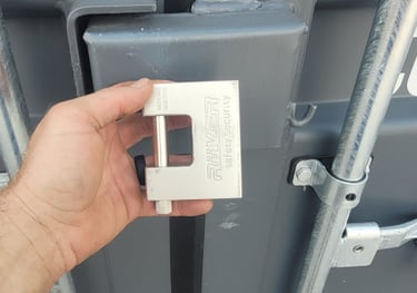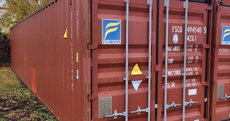 40'L x 8'H x 8'W. Wind/Water Tight, doors work well.