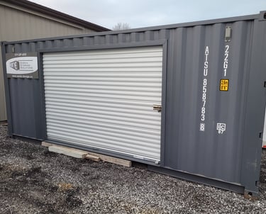 20'L x 8'H x 8'W. Excellent shape, doors work well. 10' Roll-Up.