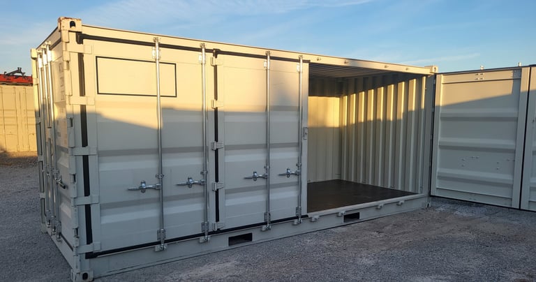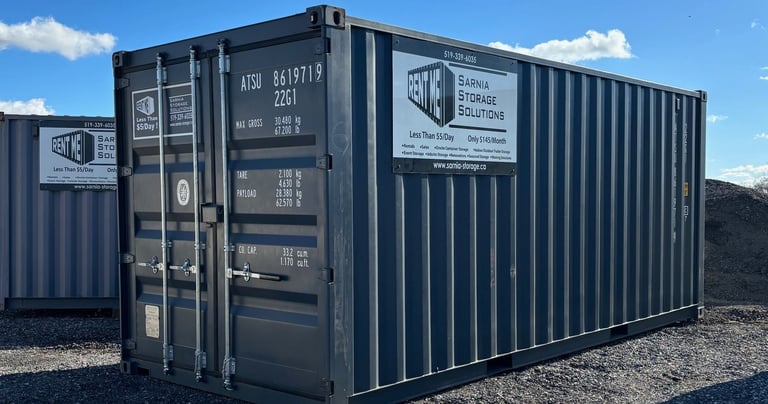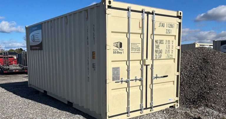 20'L x 8'H x 8'W. Typically 3-4 Years Old. Excellent shape, consistent colour, minimal to no dents. Easy to open doors